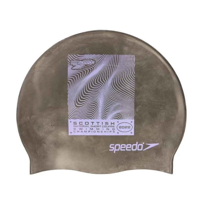 The Scottish National Short Course Swimming Championships 2022 Cap is a 100% silicone swim hat. It is latex free and one size fits all. It features the Speedo event design and the Speedo logo. It is now buy one get one free, so you get two caps for £8.