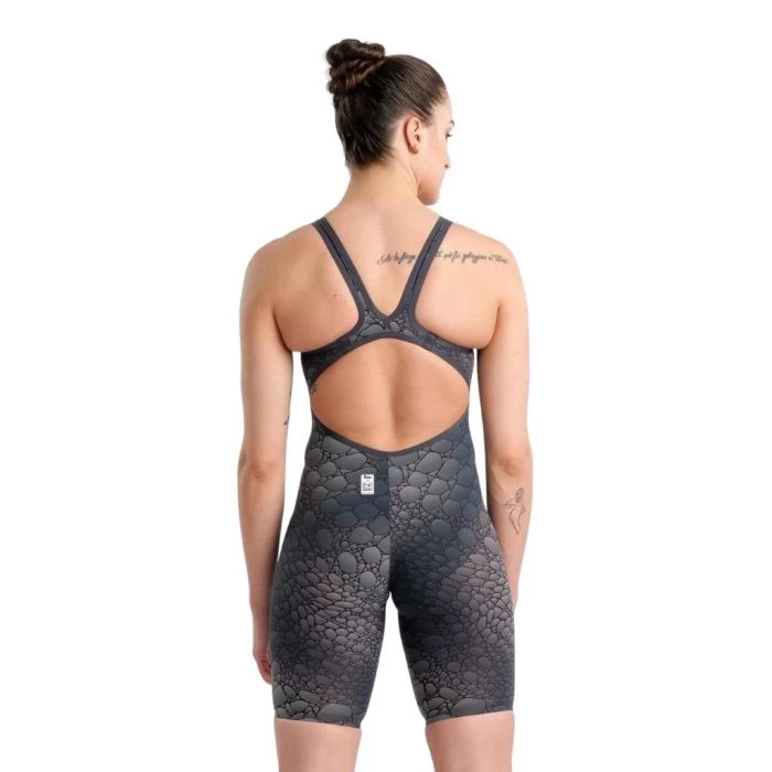 Arena Powerksin Carbon Air 2 Open Back kneeskins are packed with tech to help you race at your best. There are horizontal bands of carbon fiber through the suit that provide muscle compression and support. So you can stay in control throughout your race. The racing skin is made with a single-piece construction and has bonded seams along with a 3-panel lining. This all adds up to give you total flexibility, comfortable compression, and maximum glide in the water.