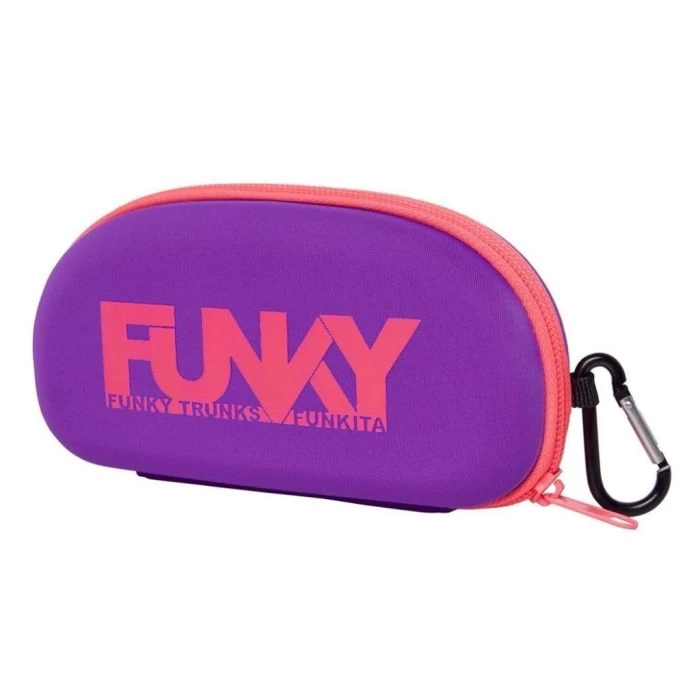 The FUNKY Purple Punch Case Closed Goggle Case is a hardshell case that will protect your goggles. It has a carabiner clip so you can hang it from your bag. This one comes in Purple with the FUNKY logo in gold.