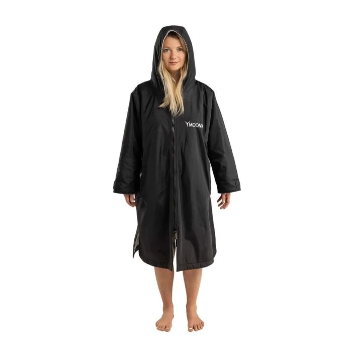 The Moonwrap Long Sleeve Changing Robe Black is a 100% waterproof and fleece-lined, long sleeve changing robe. This oversized robe is perfect for outdoor events and will keep you dry and warm. It will shelter you from the elements and allow you to change inside. With a large inner chamber, you can change easily into/out of training/racing clothing like wetsuits.