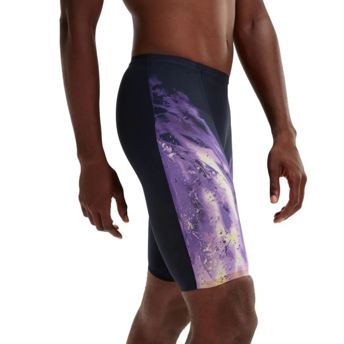 You will feel unstoppable wearing Speedo Fastskin LZR Pure Valor High Waisted Jammers (Navy/Miami Lilac/Spritz). They have been developed by some of the worlds top swimmers for advanced competitive swimmers. Made from a lightweight material and featuring a moderate level of compression, they allow for a greater range of movement. There is a compressive inner leg seam that give you greater muscle support and help you race at your best. This high waisted style provides extra coverage and can help boost performance. It is fully FINA-approved for the record breakers.