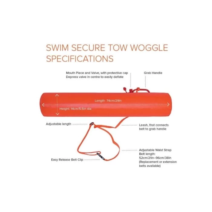 The Swim Secure Tow Woggle is an inflatable swimming noodle for open water safety. Extremely useful for kids swimming outdoors. They can easily grip and kick with the support of the woggle. As they increase in confidence, they can tow the woggle behind with the attached leash and waist belt. Please note the belt is slightly shorter than other Swim Secure tow float products.