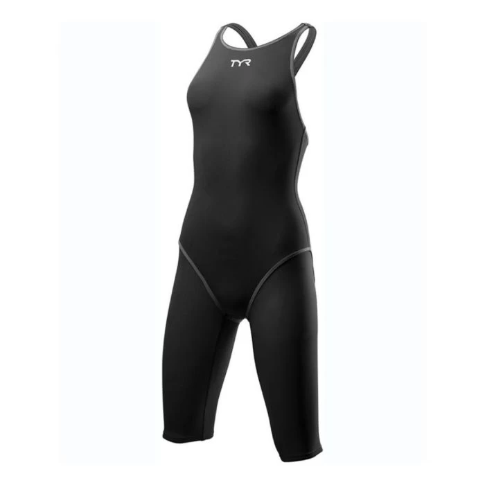 The TYR Women’s Thresher Black / Grey Kneeskin will help you race at your best. It showcases a combination of innovative features. With embedded hydrophobic fibre this FINA-approved technical suit maximizes performance by reducing drag in the water. Increasing the speed and efficiency of every swimmer, the Thresher’s advanced level of compression helps to maximize core stabilization and support.